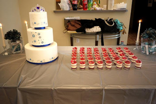 I wanted to make something for her before she left and I only had a few days (workdays) after my previous trip to plan, shop and to make it, so there wasn't much I could do. I decided to make a display cake with the blue/silver theme to get that "fairy tale" feeling and make verrines for the dessert. N loves the rose-lychee combination, and so I decided to make a verrine that incorporates raspberry, rose, and lychee. You might think that I make this combination too often, but I do love it that much, the combination of flavors and the appearance, again, Pierre Herme is a genius for coming up with this combo among many others.