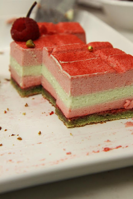 Raspberry and Pistachio Mousse Cake